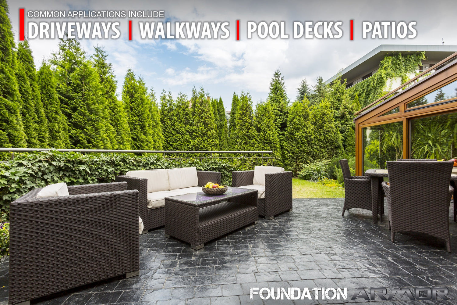 • VERSATILE: The Armor AR500 can be used on a variety of exterior concrete surfaces including poured concrete, broom finished concrete, stamped concrete, and concrete pavers. Common applications include driveways, walkways, patios, pool decks, sidewalks, curbing, walls, and more!
