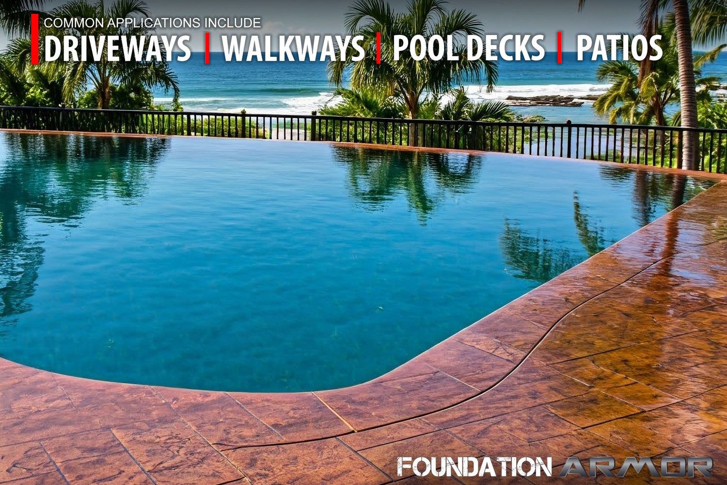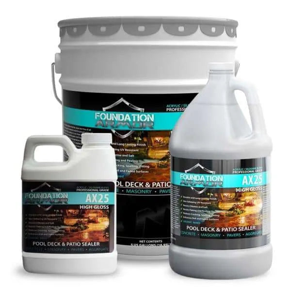 Another great option is the Armor AX25 which combines a water repellent penetrating sealer with an acrylic sealer. This is great for areas constantly exposed to water, such as pool decks.