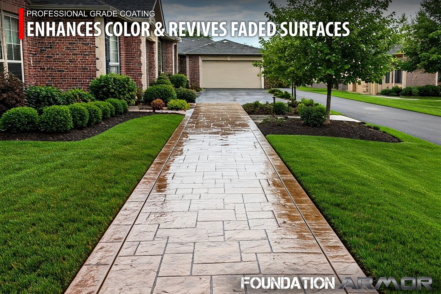 The Armor WL550 is the best wet look sealer for unsealed stamped concrete if you are looking for a slight color enhancement without the gloss.