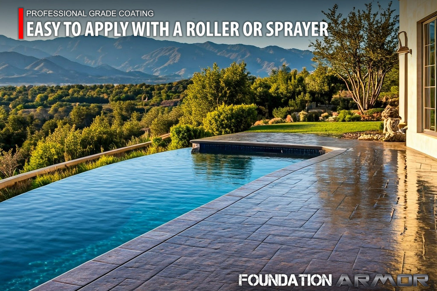 Another great option is the Armor AX25 which combines a water repellent penetrating sealer with an acrylic sealer. This is great for areas constantly exposed to water, such as pool decks.